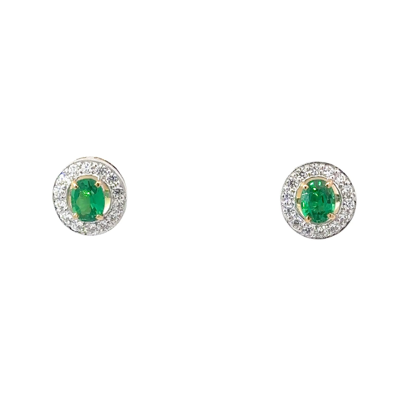18k Green Stone & White Sapphire Gold Earrings